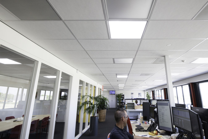 A total of 16No Ø 53 cm diameter Solatubes were installed into the distribution centre. Due to the existing ceiling system within the building, the office variant of the Ø 53 cm was chosen as the square ceiling diffusers fit perfectly into the ceiling grid.