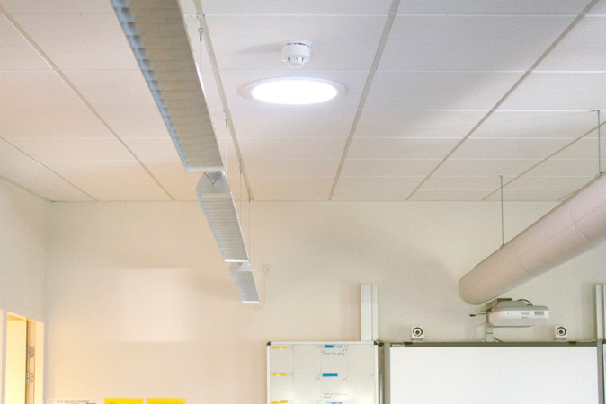 Naturally, daylight entry could not be missed when realizing the aforementioned criteria. The choice was made for a total of 26 Nr Ø 35 cm Solatubes of which 12 Nr were installed into a flat roof and 14Nr into a tiled roof. This way of lighting is not only energy-efficient, but daylight is also proven to improve students levels of concentration.