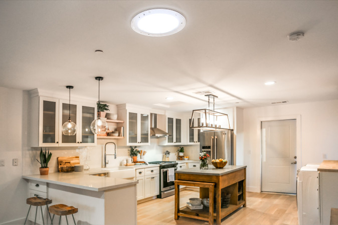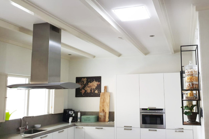 Do you have a dark kitchen and want more light? At Solatube we have the perfect solution. With our Solatube daylight system we can transform your kitchen into a beautifully lit room. The natural daylight provided during the day can be supplemented with an optional integrated Solatube electrical lighting fixture so that your kitchen also remains a pleasant, bright living space during the hours of darkness. At Solatube we have many years of experience and expertise in daylight systems. Is your dark kitchen small or large, high or low? We have a suitable solution for every type of space.