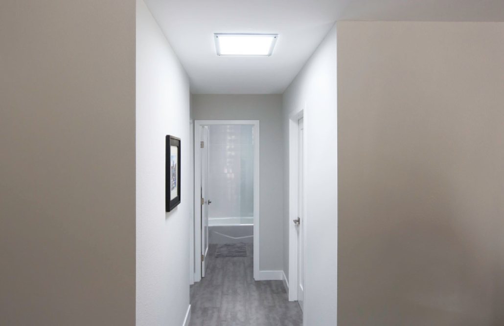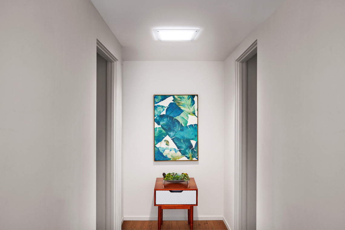 The Solatube Ø 35 cm system is available with various ceiling diffuser style options in both a round or square finish. The square diffuser system also has a unique option which can be recessed into the ceiling.